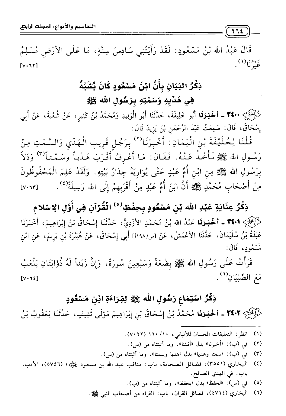 ذِكْرُ عِنَايَةِ عَبْدِ اللهِ بْنِ مَسْعُودٍ بِحِفْظِ الْقُرْآنِ فِي أَوَّلِ الإِسْلَامِ.