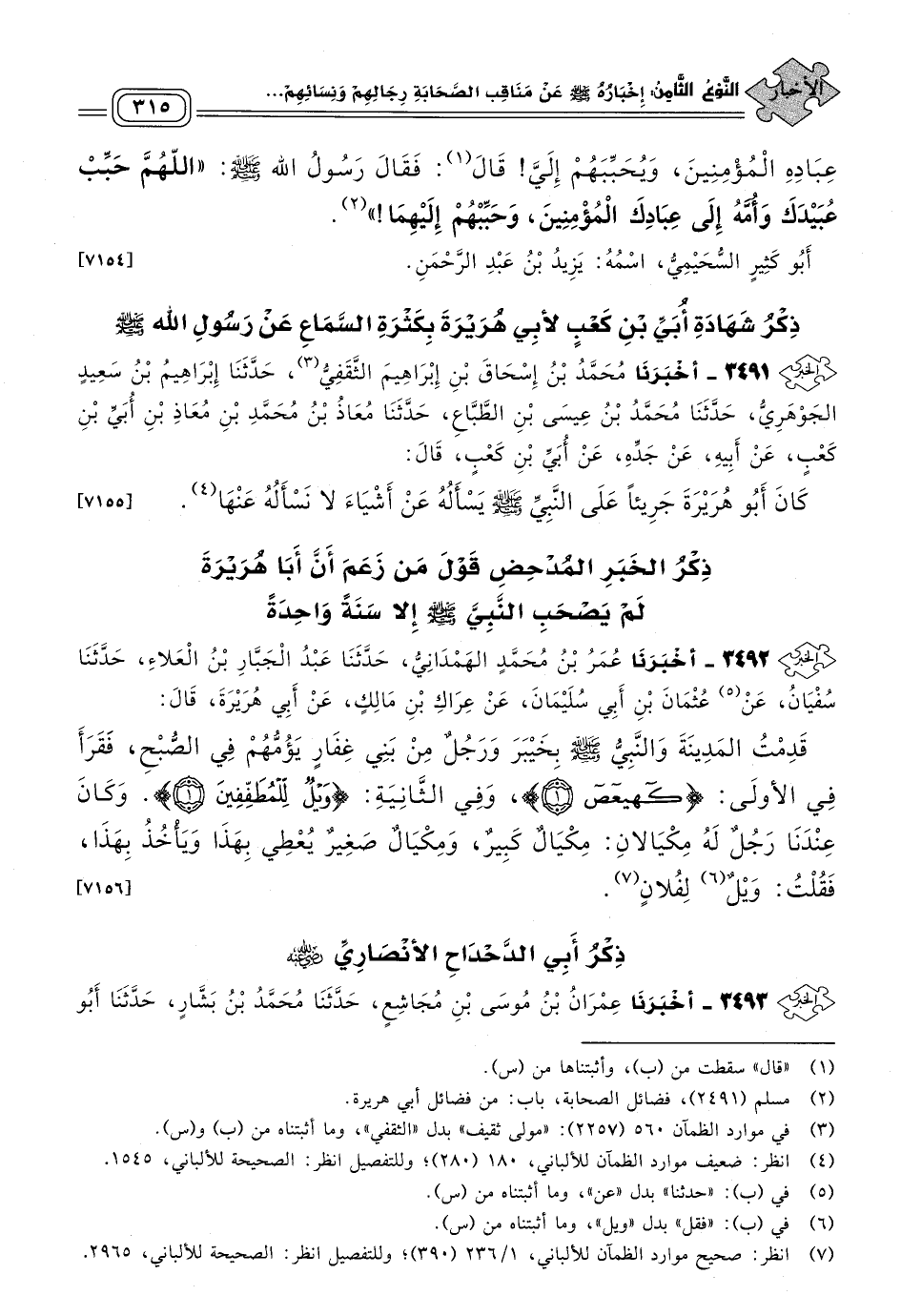 ٣٤٩١ - أَخبَرنا مُحَمَّدُ بْنُ إِسْحَاقَ بْنِ إِبْرَاهِيمَ الثَّقَفِيُّ، حَدثنا إِبْرَاهِيمُ بْنُ سَعِيدٍ الْجَوْهَرِيُّ، حَدثنا مُحَمَّدُ بْنُ عِيسَى بْنِ الطَّبَّاعِ، حَدثنا مُعَاذُ بْنُ مُحَمَّدِ بْنِ مُعَاذِ بْنِ أُبَيِّ بْنِ كَعْبٍ، عَنْ أَبِيهِ، عَنْ جَدِّهِ، عَنْ أُبَيِّ بْنِ كَعْبٍ، قَالَ: كَانَ أَبُو هُرَيْرَةَ جَرِيئًا عَلَى النَّبِيِّ صَلى الله عَلَيه وسَلم يَسْأَلُهُ عَنْ أَشْيَاءَ لَا نَسْأَلُهُ عَنْهَا. [٧١٥٥]