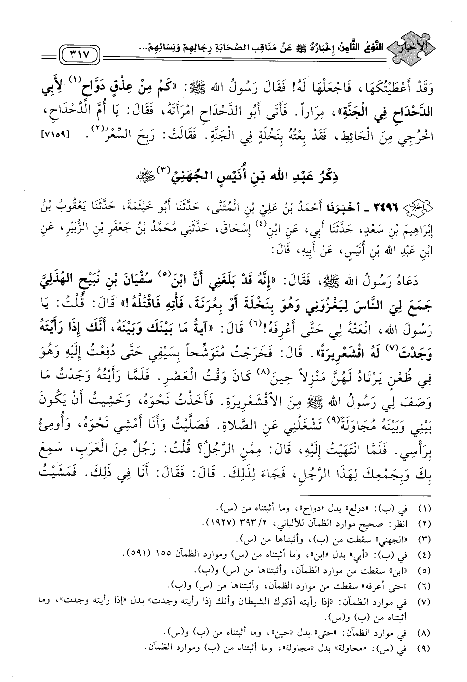 ذِكْرُ عَبْدِ اللهِ بْنِ أُنَيْسٍ الجهني رَضِيَ اللهُ عَنْهُ.