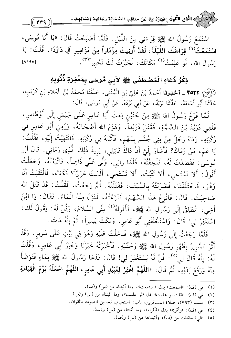 ذِكْرُ دُعَاءِ الْمُصْطَفَى صَلى الله عَلَيه وسَلم لأَبِي مُوسَى بِمَغْفِرَةِ ذُنُوبِهِ.