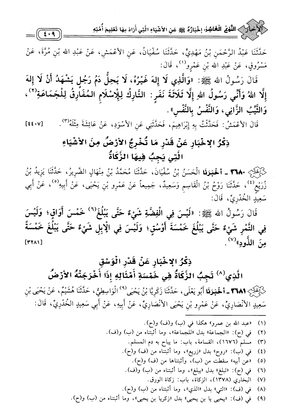 ٣٦٨١ - أَخبَرنا أَبُو يَعْلَى، حَدثنا زَكَرِيَّا بْنُ يَحْيَى الْوَاسِطِيُّ، حَدثنا هُشَيْمٌ، عَنْ يَحْيَى بْنِ سَعِيدٍ الأَنْصَارِيِّ، عَنْ عَمْرِو بْنِ يَحْيَى الأَنْصَارِيِّ، عَنْ أَبِيهِ، عَنْ أَبِي سَعِيدٍ الْخُدْرِيِّ، قَالَ: قَالَ رَسُولُ اللهِ صَلى الله عَلَيه وسَلم: "لَيْسَ فِيمَا دُونَ خَمْسِ أَوَاقٍ صَدَقَةٌ، وَلَيْسَ فِيمَا دُونَ خَمْسِ ذَوْدٍ صَدَقَةٌ، وَلَيْسَ فِيمَا دُونَ خَمْسَةِ أَوْسُقٍ صَدَقَةٌ"، وَالْوَسْقُ سِتُّونَ صَاعًا. [٣٢٨٢]