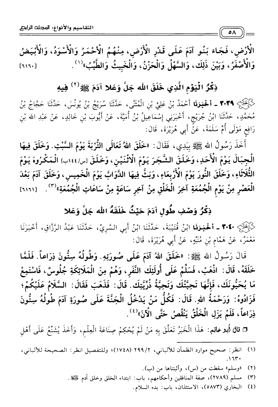 ذِكْرُ الْيَوْمِ الَّذِي خَلَقَ اللهُ جَلَّ وَعَلَا آدَمَ صَلى الله عَلَيه وسَلم فِيهِ.
