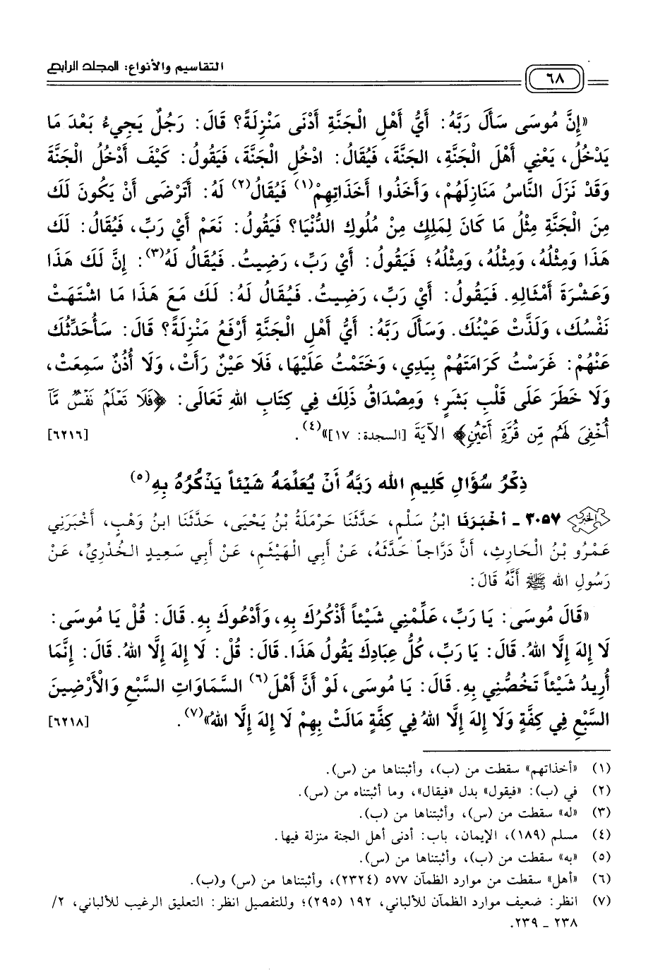 ذِكْرُ سُؤَالِ كَلِيمِ اللهِ رَبَّهُ أَنْ يُعَلِّمَهُ شَيْئًا يَذْكُرُهُ به.