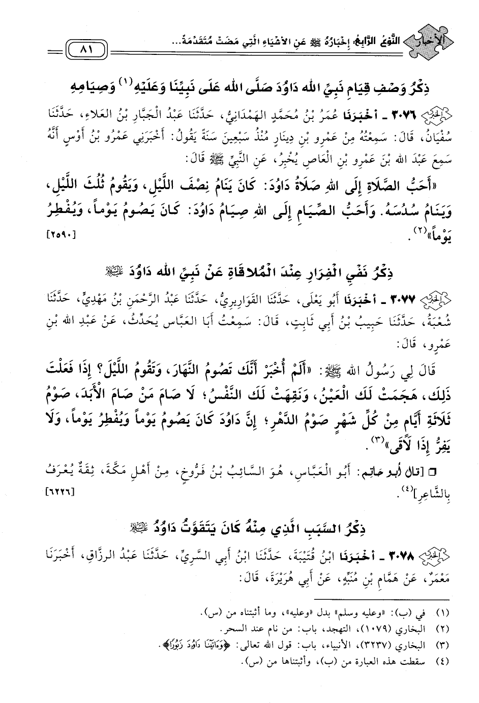 ذِكْرُ وَصْفِ قِيَامِ نَبِيِّ اللهِ دَاوُدَ صَلَّى اللهُ عَلَى نَبِيِّنَا وَعَلَيْهِ وَصِيَامِهِ.