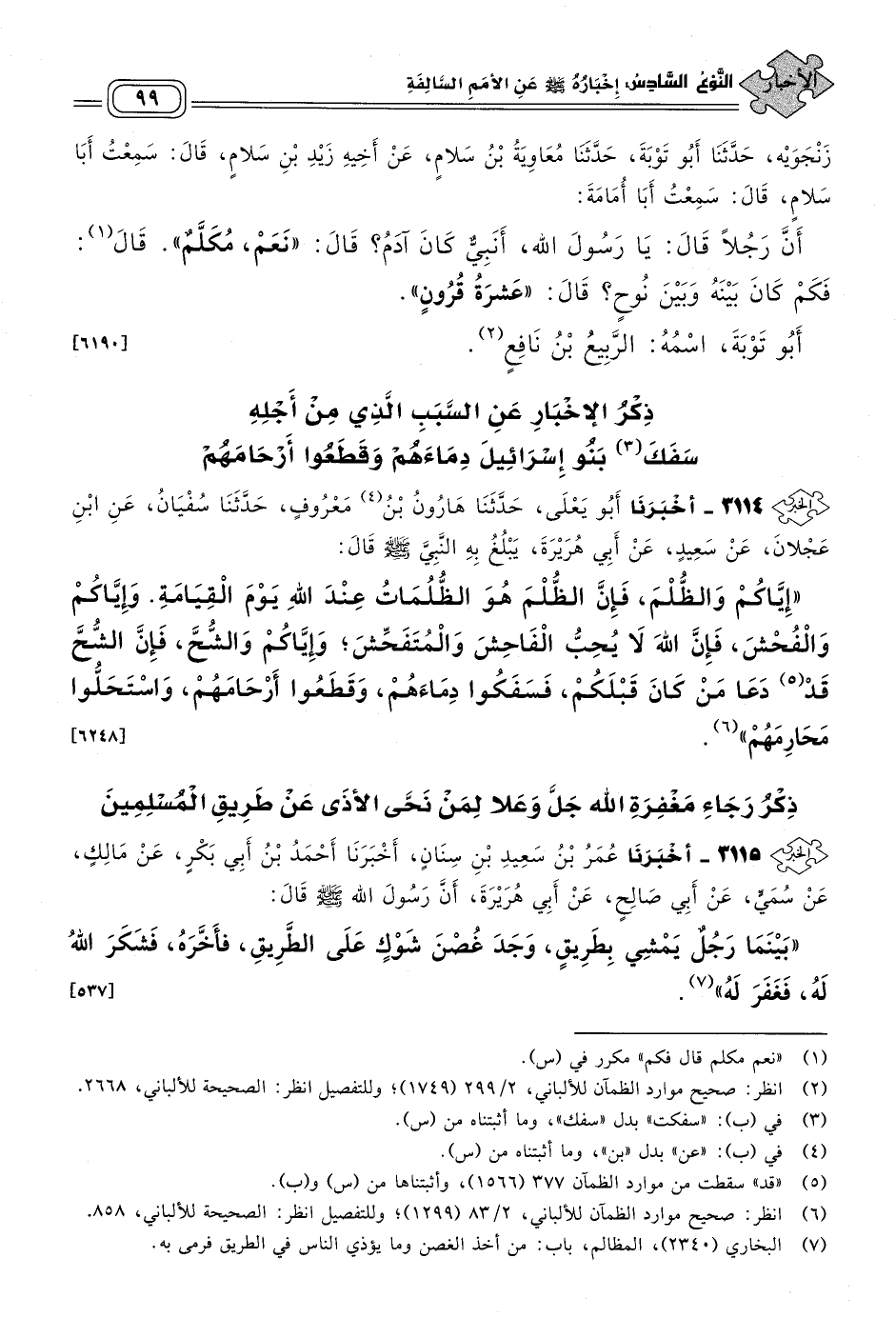 ذِكْرُ رَجَاءِ مَغْفِرَةِ اللهِ جَلَّ وَعَلَا لِمَنْ نَحَّى الأَذَى عَنْ طَرِيقِ الْمُسْلِمِينَ.