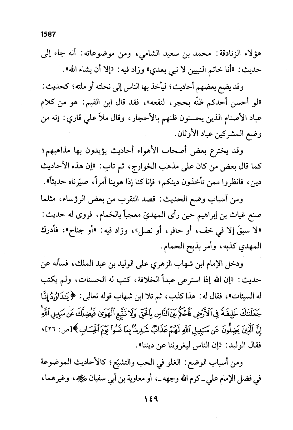 هؤلاء الزنادقة: محمد بن سعيد الشامي، ومن موضوعاته: أنه جاء إلى حديث: "أنا خاتم النبيين لا نبي بعدي" وزاد فيه: "إلا أن يشاء الله".