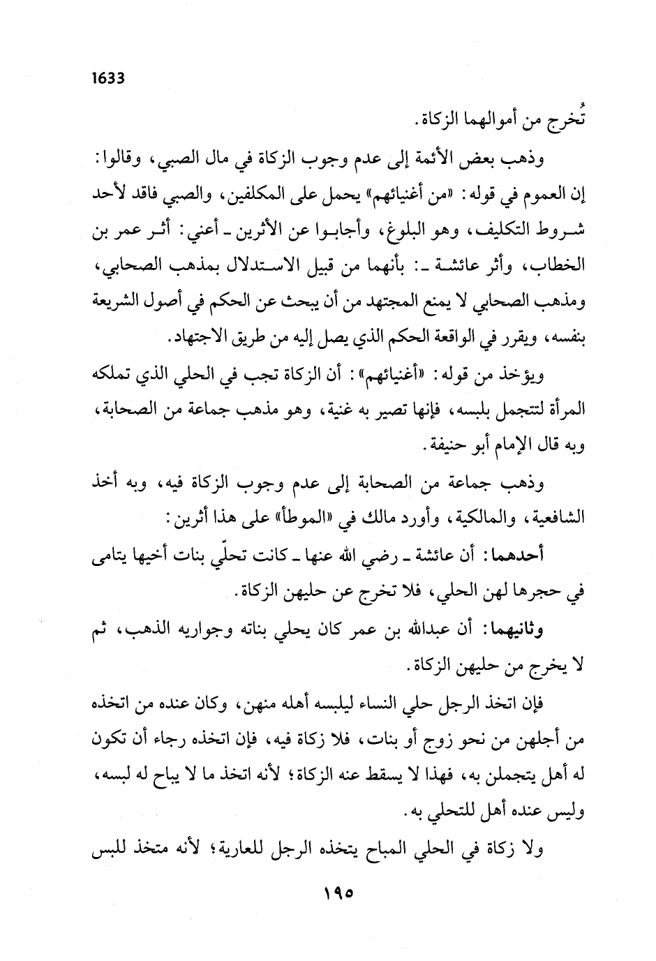 وذهب بعض الأئمة إلى عدم وجوب الزكاة في مال الصبي، وقالوا: إن العموم في قوله: "من أغنيائهم" يحمل على المكلفين، والصبي فاقد لأحد شروط التكليف، وهو البلوغ، وأجابوا عن الأثرين - أعني: أثر عمر بن الخطاب، وأثر عائشة -: بأنهما من قبيل الاستدلال بمذهب الصحابي، ومذهب الصحابي لا يمنع المجتهد من أن يبحث عن الحكم في أصول الشريعة بنفسه، ويقرر في الواقعة الحكم الذي يصل إليه من طريق الاجتهاد.