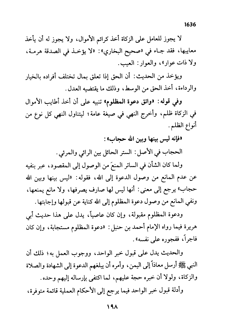 وفي قوله: "واتق دعوة المظلوم" تنبيه على أن أخذ أطايب الأموال في الزكاة ظلم، وأخرج النهي في صيغة عامة؛ ليتناول النهي كل نوع من أنواع الظلم.