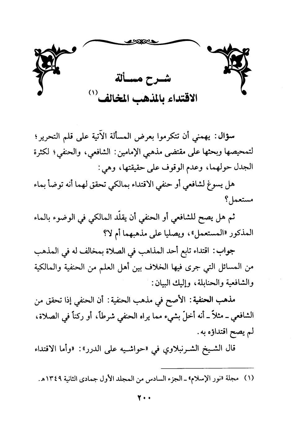 (¬1) مجلة "نور الإسلام" - الجزء السادس من المجلد الأول جمادى الثانية 1349 هـ.