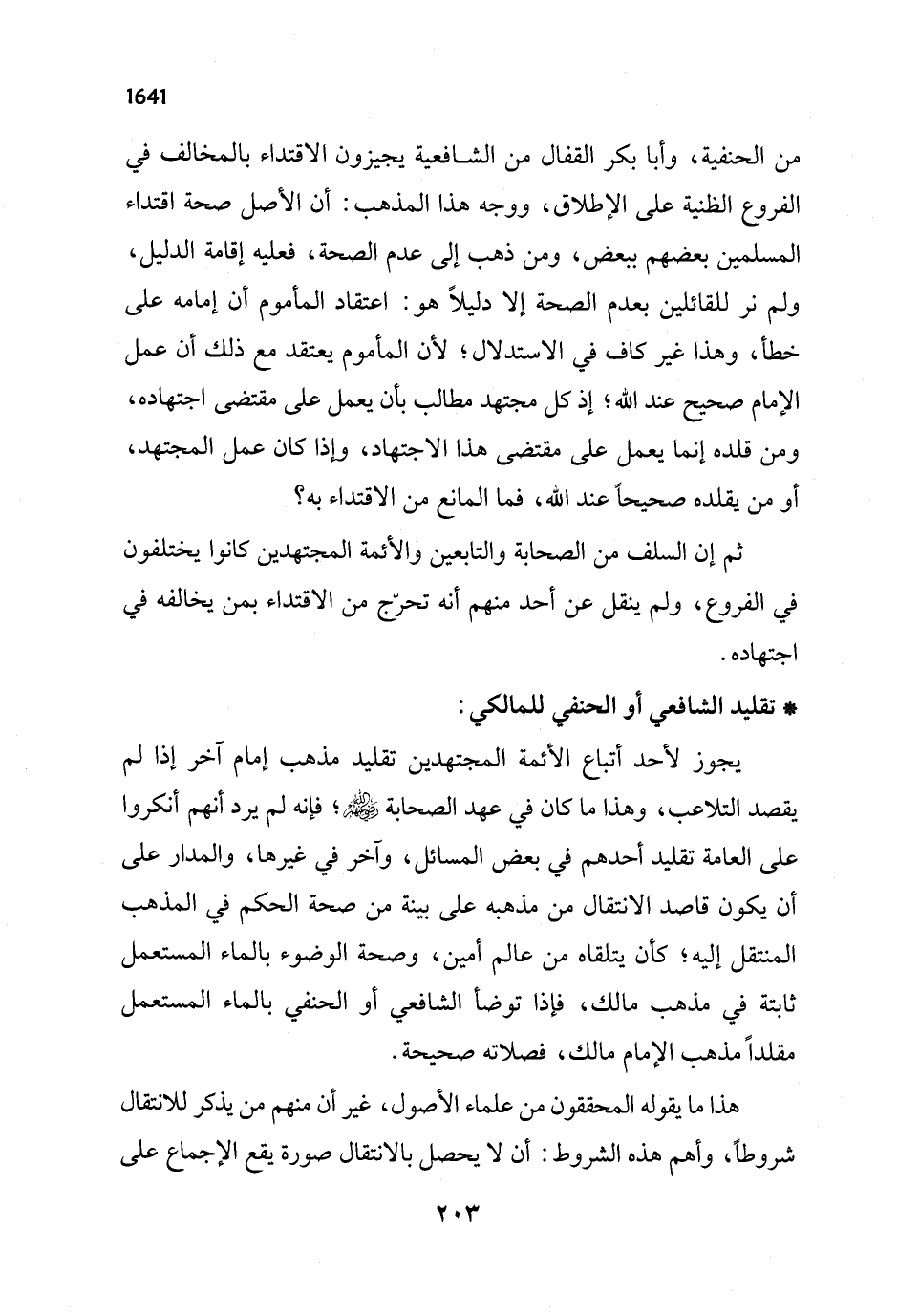 * تقليد الشافعي أو الحنفي للمالكي: