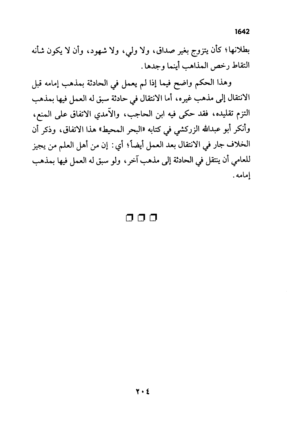 وهذا الحكم واضح فيما إذا لم يعمل في الحادثة بمذهب إمامه قبل الانتقال إلى مذهب غيره، أما الانتقال في حادثة سبق له العمل فيها بمذهب التزم تقليده، فقد حكى فيه ابن الحاجب، والآمدي الاتفاق على المنع، وأنكر أبو عبد الله الزركشي في كتابه "البحر المحيط" هذا الاتفاق، وذكر أن الخلاف جار في الانتقال بعد العمل أيضاً؛ أي: إن من أهل العلم من يجيز للعامي أن ينتقل في الحادثة إلى مذهب آخر، ولو سبق له العمل فيها بمذهب إمامه.