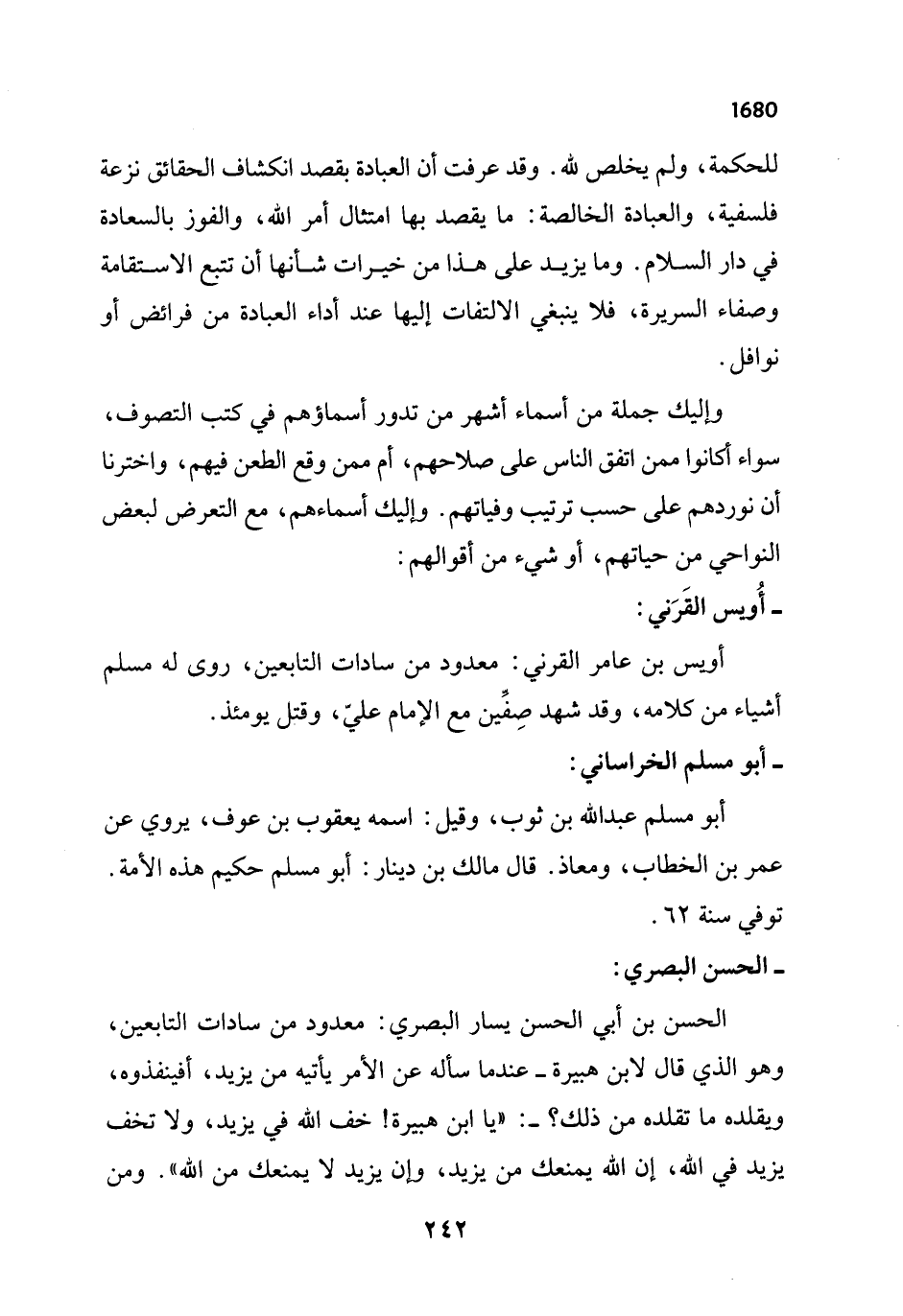 الحسن بن أبي الحسن يسار البصري: معدود من سادات التابعين، وهو الذي قال لابن هبيرة- عندما سألة عن الأمر يأتيه من يزيد، أفينفذوه، ويقلده ما تقلده من ذلك؟ -: "يا ابن هبيرة! خف الله في يزيد، ولا تخف يزيد في الله، إن الله يمنعك من يزيد، وإن يزيد لا يمنعك من الله". ومن