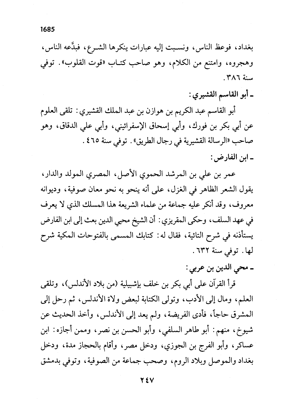 أبو القاسم عبد الكريم بن هوازن بن عبد الملك القشيري: تلقى العلوم عن أبي بكر بن فورك، وأبي إسحاق الإسفرائيني، وأبي علي الدقاق، وهو صاحب "الرسالة القشيرية في رجال الطريق". توفي سنة 465.