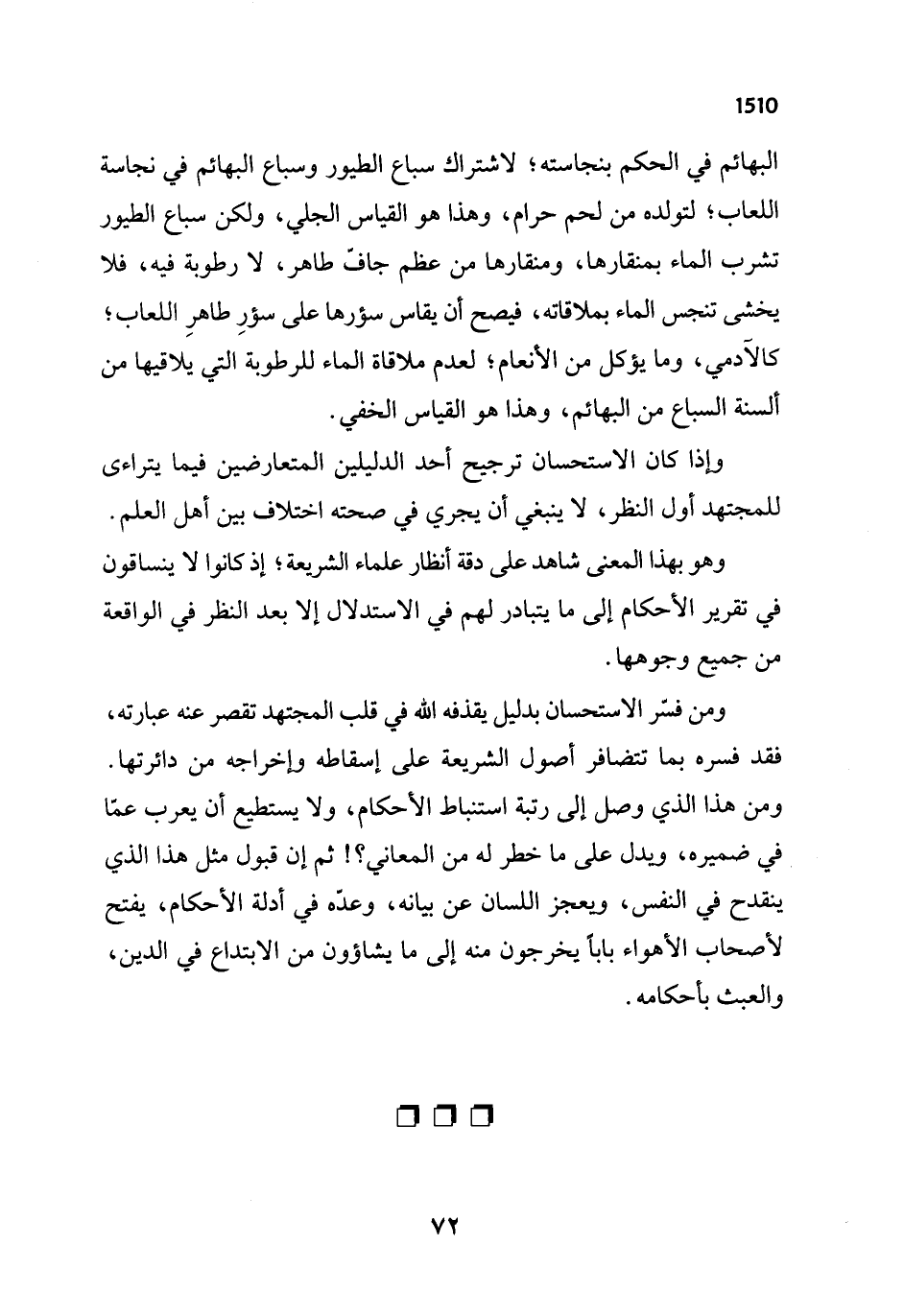 ومن فسَّر الاستحسان بدليل يقذفه الله في قلب المجتهد تقصر عنه عبارته، فقد فسره بما تتضافر أصول الشريعة على إسقاطه وإخراجه من دائرتها. ومن هذا الذي وصل إلى رتبة استنباط الأحكام، ولا يستطيع أن يعرب عمّا في ضميره، ويدل على ما خطر له من المعاني؟! ثم إن قبول مثل هذا الذي ينقدح في النفس، ويعجز اللسان عن بيانه، وعدّه في أدلة الأحكام، يفتح لأصحاب الأهواء باباً يخرجون منه إلى ما يشاؤون من الابتداع في الدين، والعبث بأحكامه.