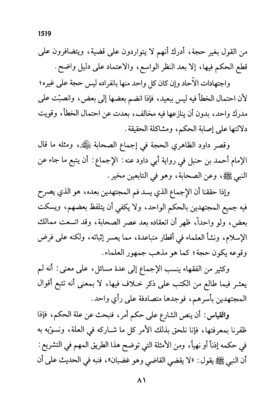 من القول بغير حجة، أدرك أنهم لا يتواردون على قضية، ويتضافرون على قطع الحكم فيها، إلا بعد النظر الواسع، والاعتماد على دليل واضح.