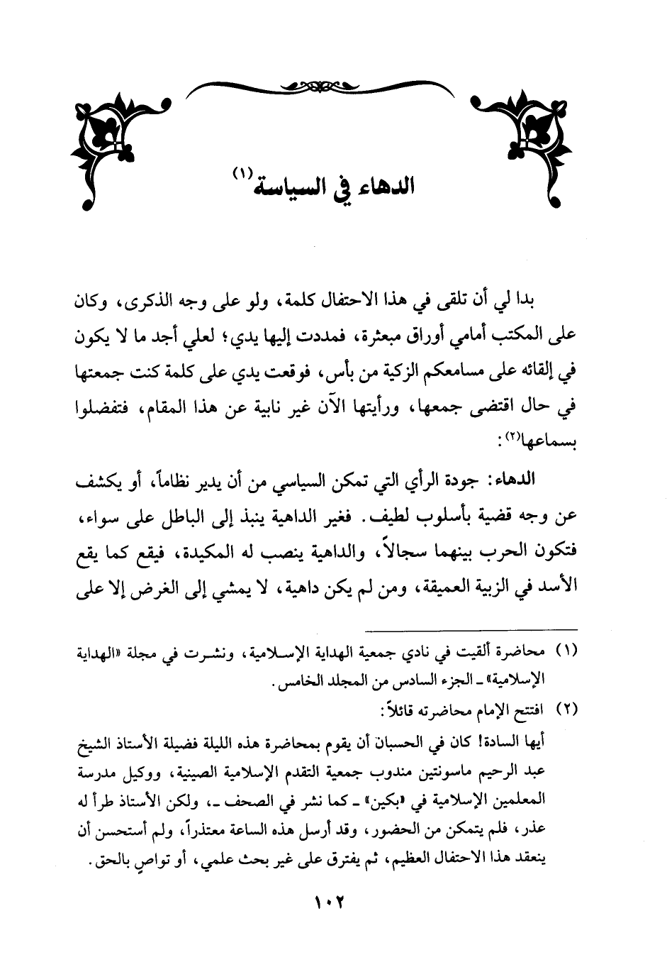 (¬2) افتتح الإمام محاضرته قائلاً: