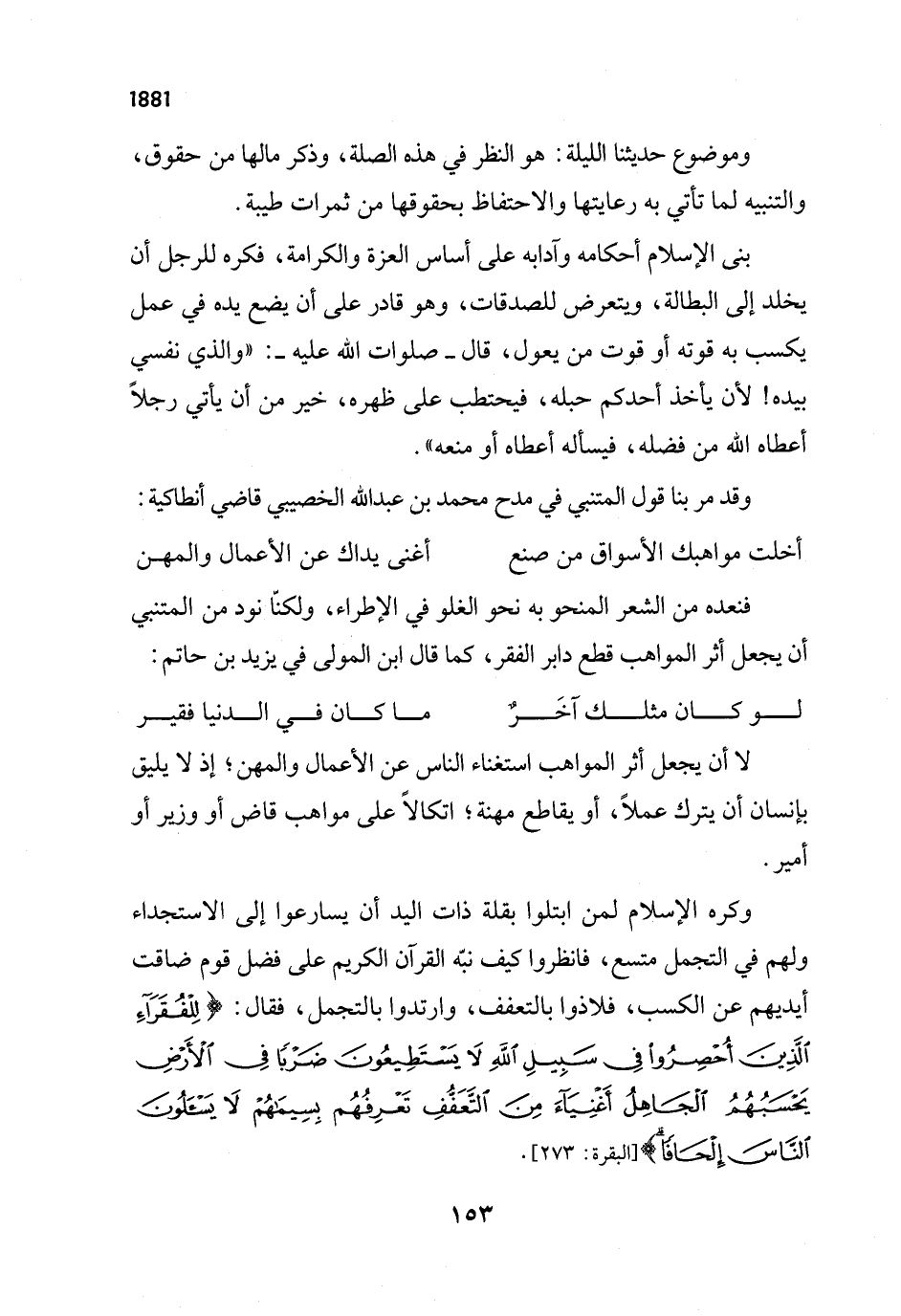 لا أن يجعل أثر المواهب استغناء الناس عن الأعمال والمهن؛ إذ لا يليق بإنسان أن يترك عملاً، أو يقاطع مهنة؛ اتكالاً على مواهب قاض أو وزير أو أمير.
