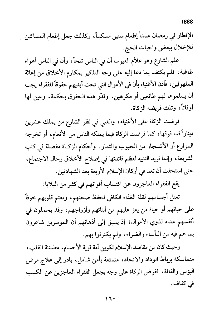 وحيث كان من مقاصد الإسلام تكوين أمة قوية الأجسام، مطمئنة القلب، متماسكة برباط الوداد والاتحاد، متمتعة بأمن شامل، بادر إلى علاج مرض البؤس والفاقة، ففرض الزكاة على وجه يجعل الفقراء العاجزين عن الكسب في كفاف.