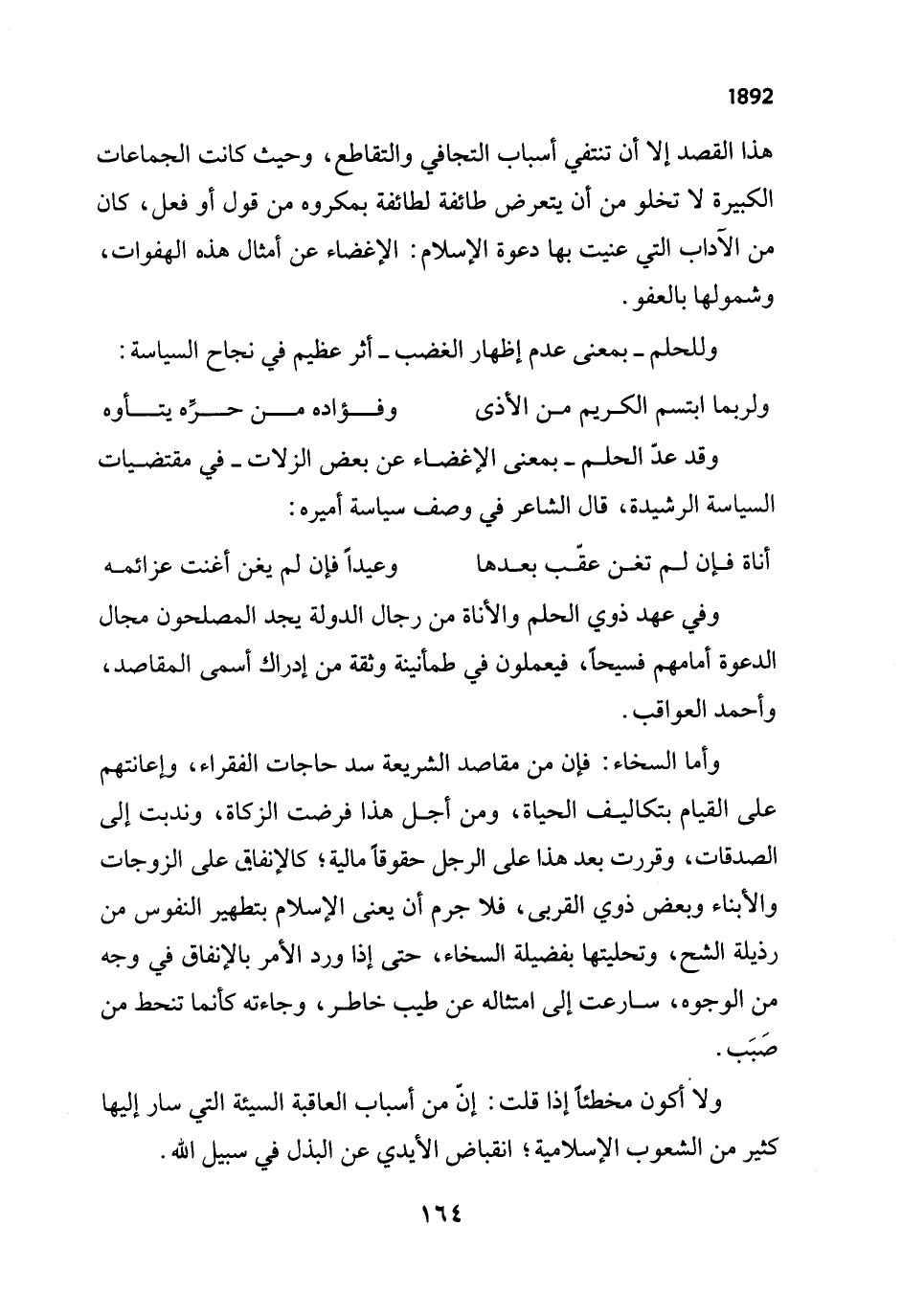 وفي عهد ذوي الحلم والأناة من رجال الدولة يجد المصلحون مجال الدعوة أمامهم فسيحاً، فيعملون في طمأنينة وثقة من إدراك أسمى المقاصد، وأحمد العواقب.