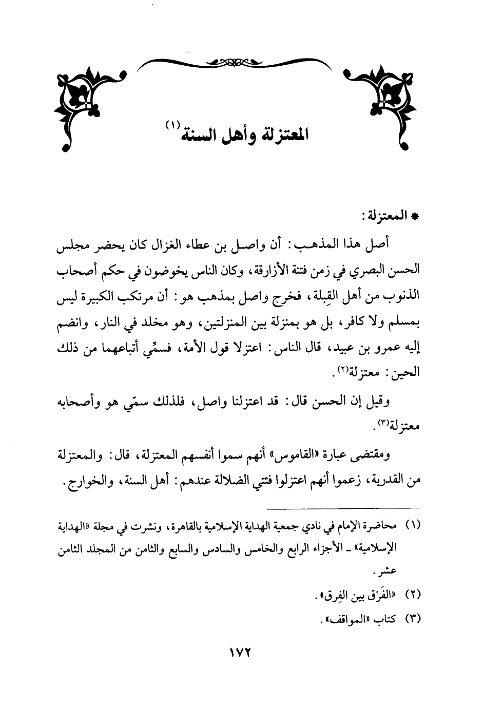 (¬1) محاضرة الإمام في نادي جمعية الهداية الإسلامية بالقاهرة، ونشرت في مجلة "الهداية الإسلامية" - الأجزاء الرابع والخامس والسادس والسابع والثامن من المجلد الثامن عشر.