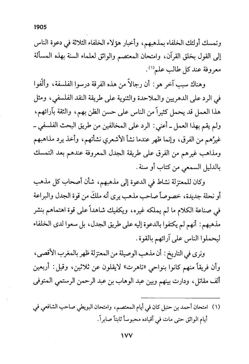 (¬1) امتحان أحمد بن حنبل كان في أيام المعتصم، وامتحان البويطي صاحب الشافعي في أيام الواثق حتى مات في أقياده محبوساً ثابتاً صابراً.