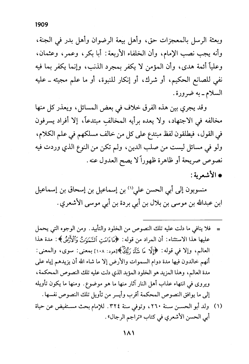 (¬1) ولد أبو الحسن سنة 260، وتوفي سنة 324. للإمام بحث مستفيض عن حياة أبي الحسن الأشعري في كتاب "تراجم الرجال".