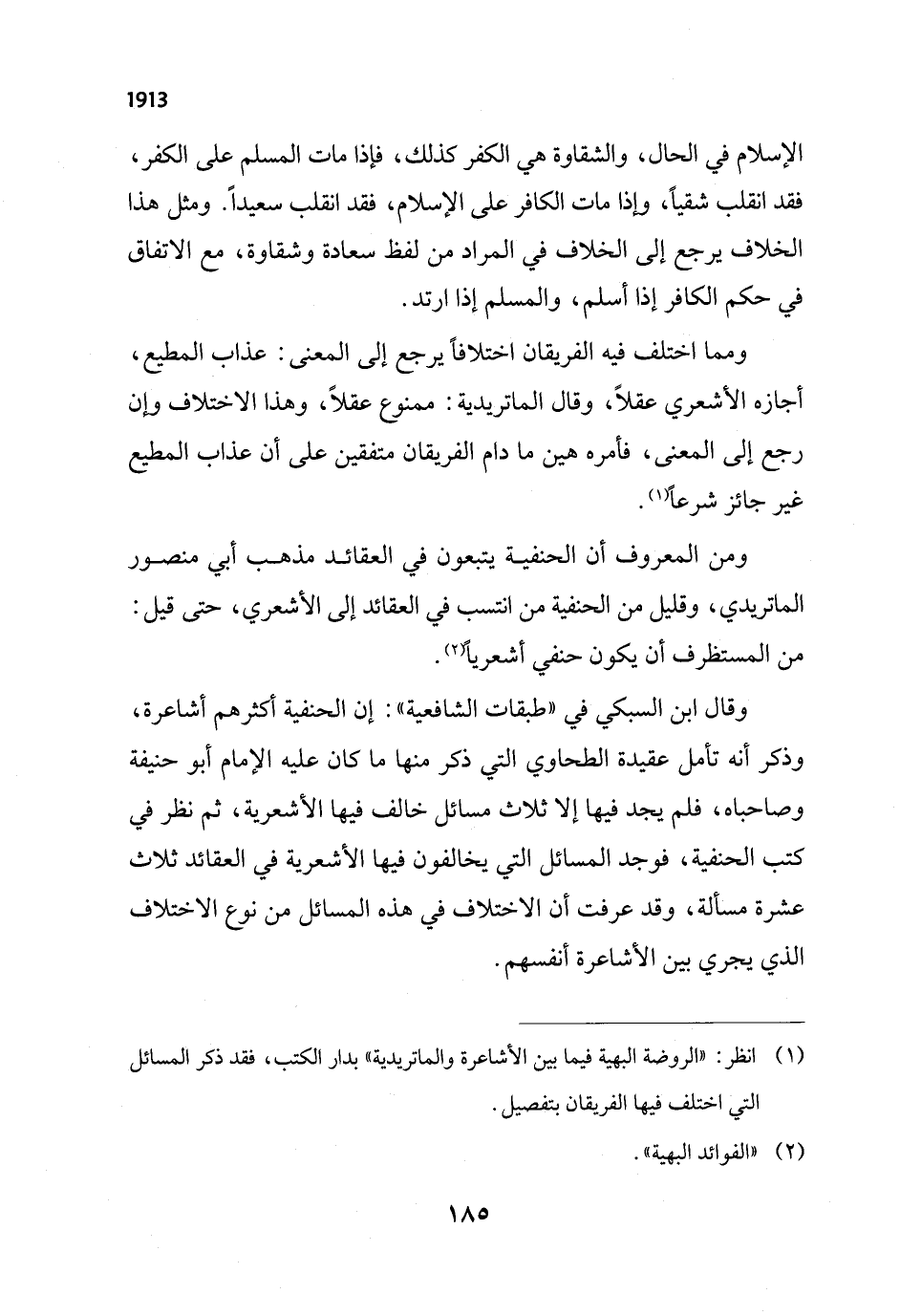 (¬1) انظر: "الروضة البهية فيما بين الأشاعرة والماتريدية" بدار الكتب، فقد ذكر المسائل التي اختلف فيها الفريقان بتفصيل.