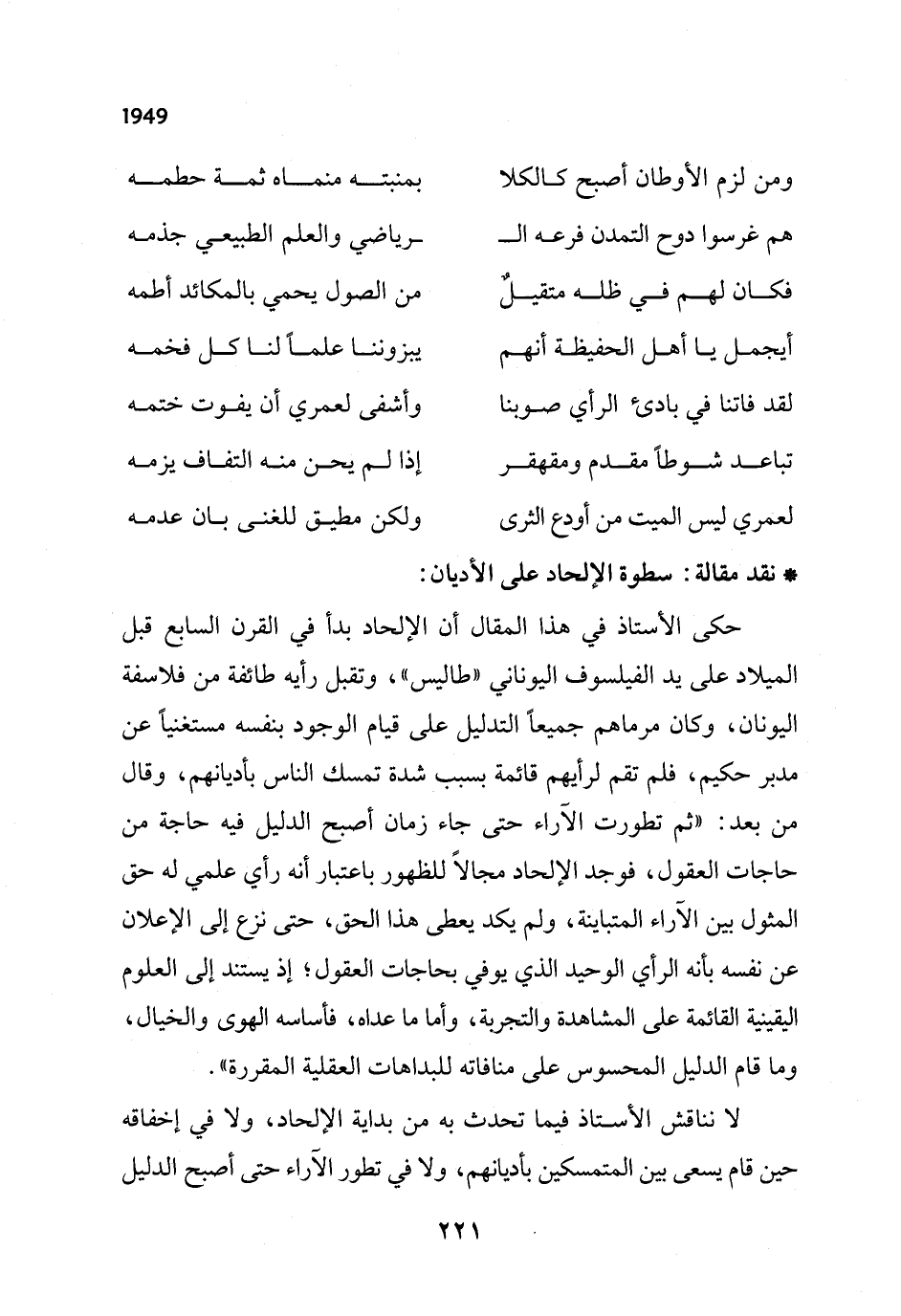 لا نناقش الأستاذ فيما تحدث به من بداية الإلحاد، ولا في إخفاقه حين قام يسعى بين المتمسكين بأديانهم، ولا في تطور الآراء حتى أصبح الدليل