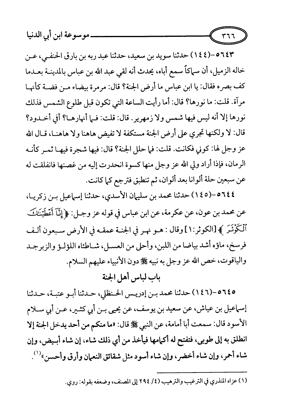 كتاب صفة الجنة لابن أبي الدنيا - ط أطلس الخضراء = مقابل