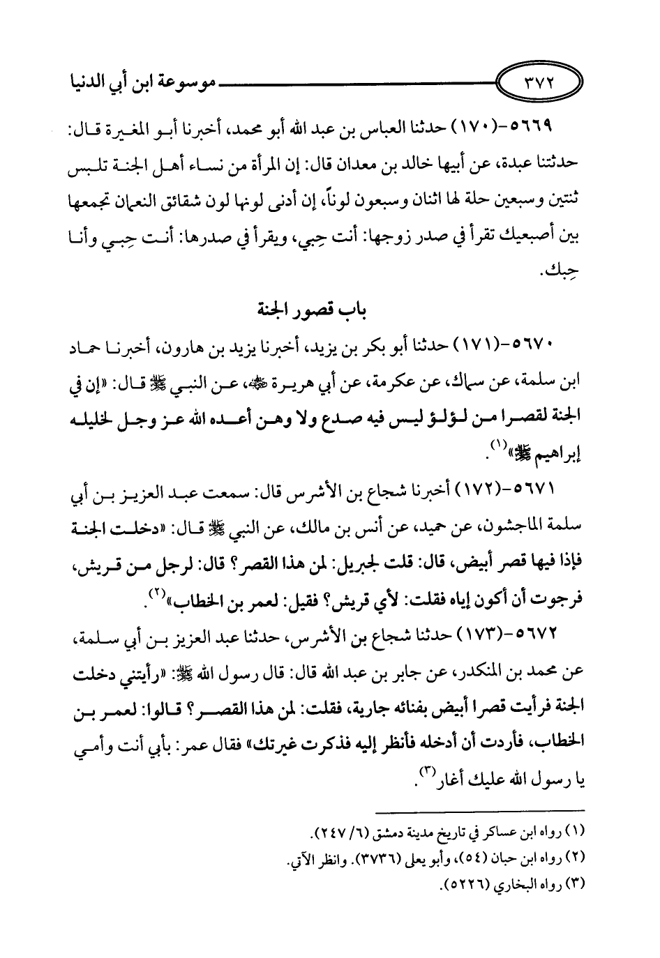 كتاب صفة الجنة لابن أبي الدنيا - ط أطلس الخضراء = مقابل