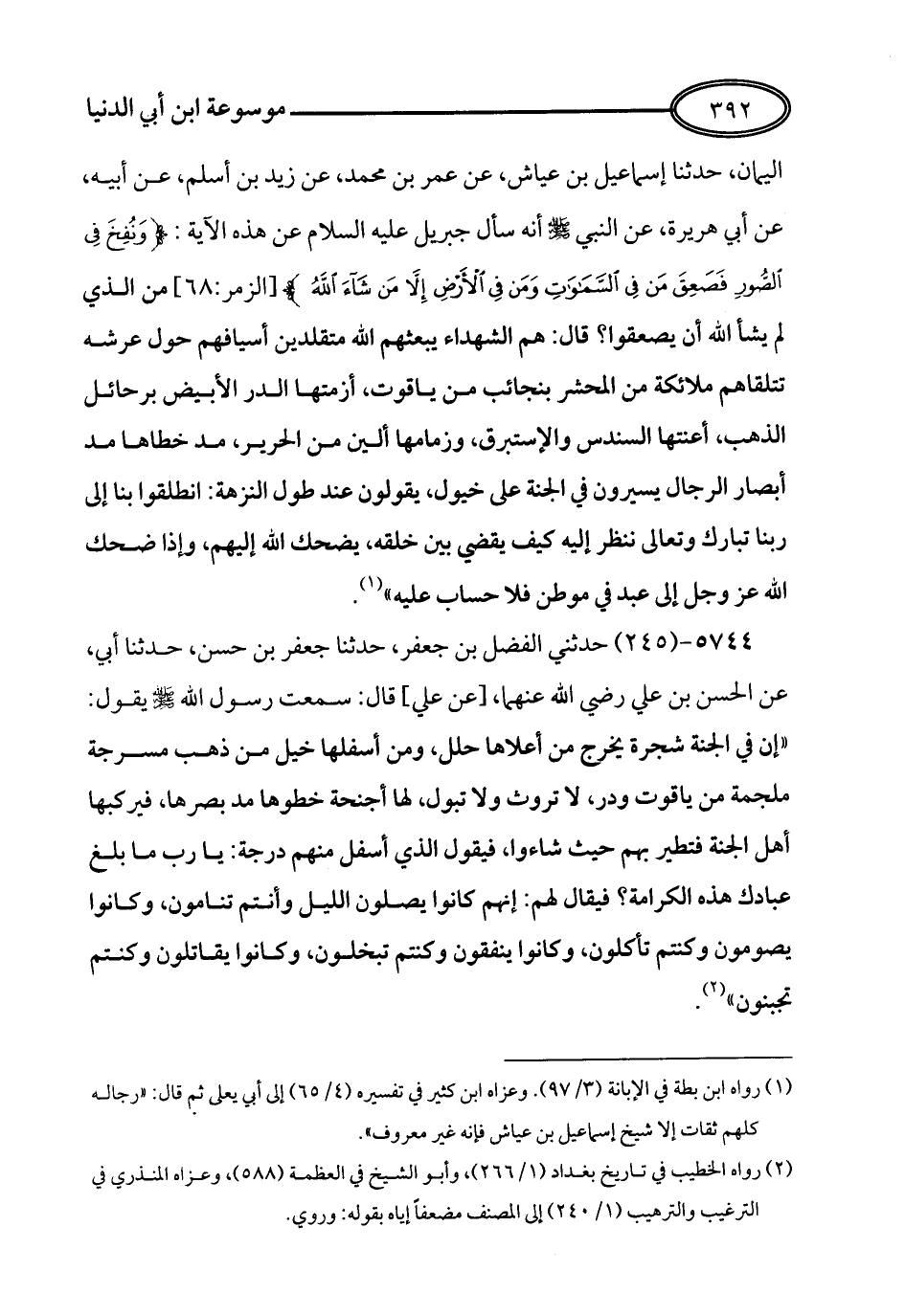 كتاب صفة الجنة لابن أبي الدنيا - ط أطلس الخضراء = مقابل