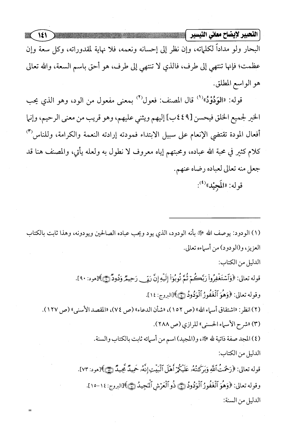(¬4) المجد صفة ذاتية لله - عز وجل -، و (المجيد) اسم من أسمائه ثابت بالكتاب والسنة.