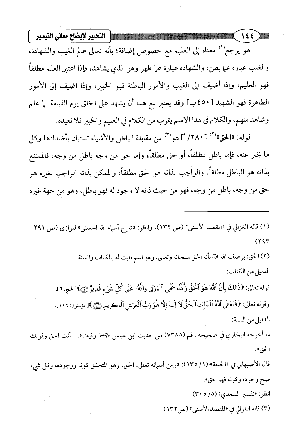 (¬1) قاله الغزالي في "المقصد الأسنى" (ص 132)، وانظر: "شرح أسماء الله الحسنى" للرازي (ص 291 - 293).