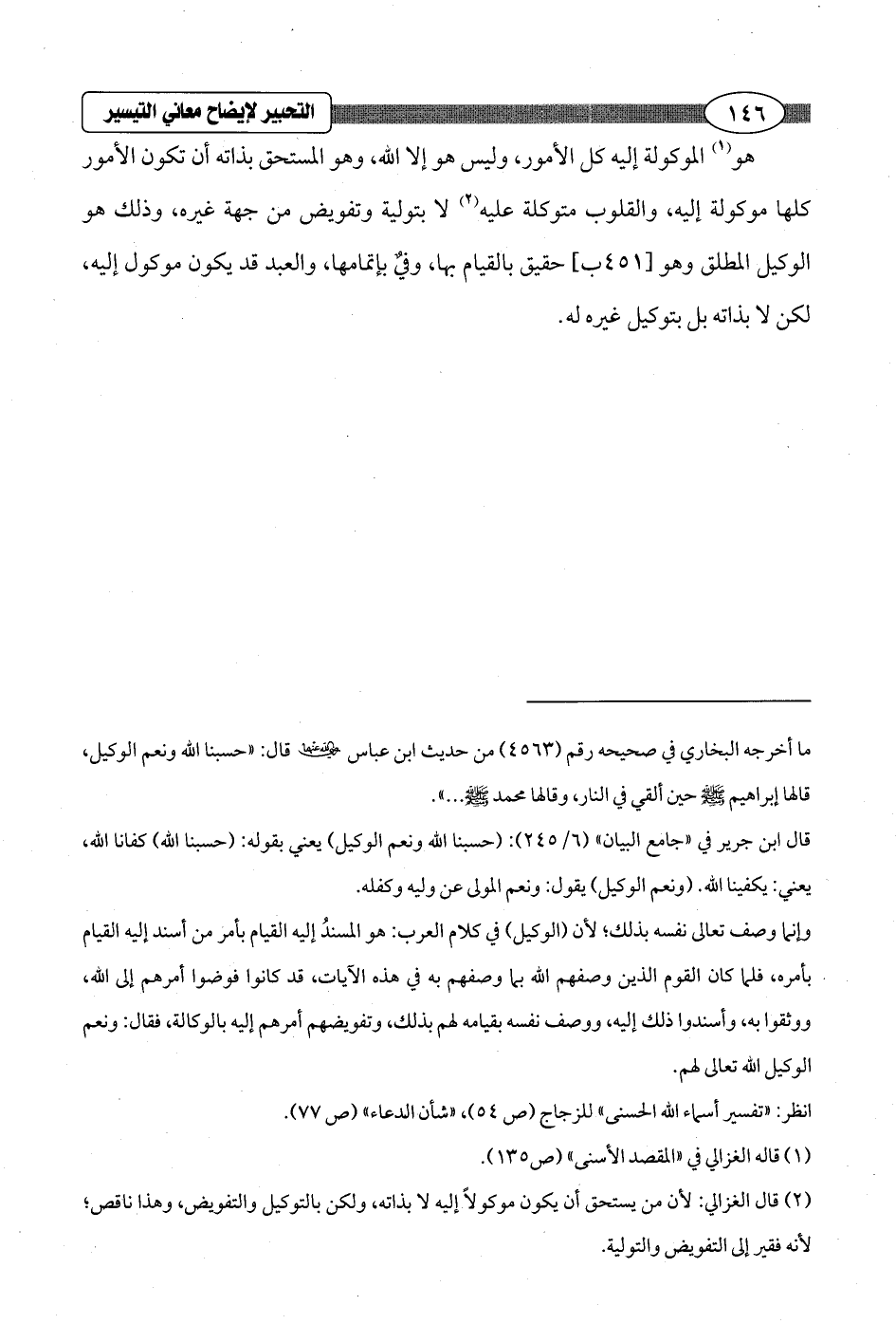 (¬2) قال الغزالي: لأن من يستحق أن يكون موكولاً إليه لا بذاته، ولكن بالتوكيل والتفويض، وهذا ناقص؛ لأنه فقير إلى التفويض والتولية.