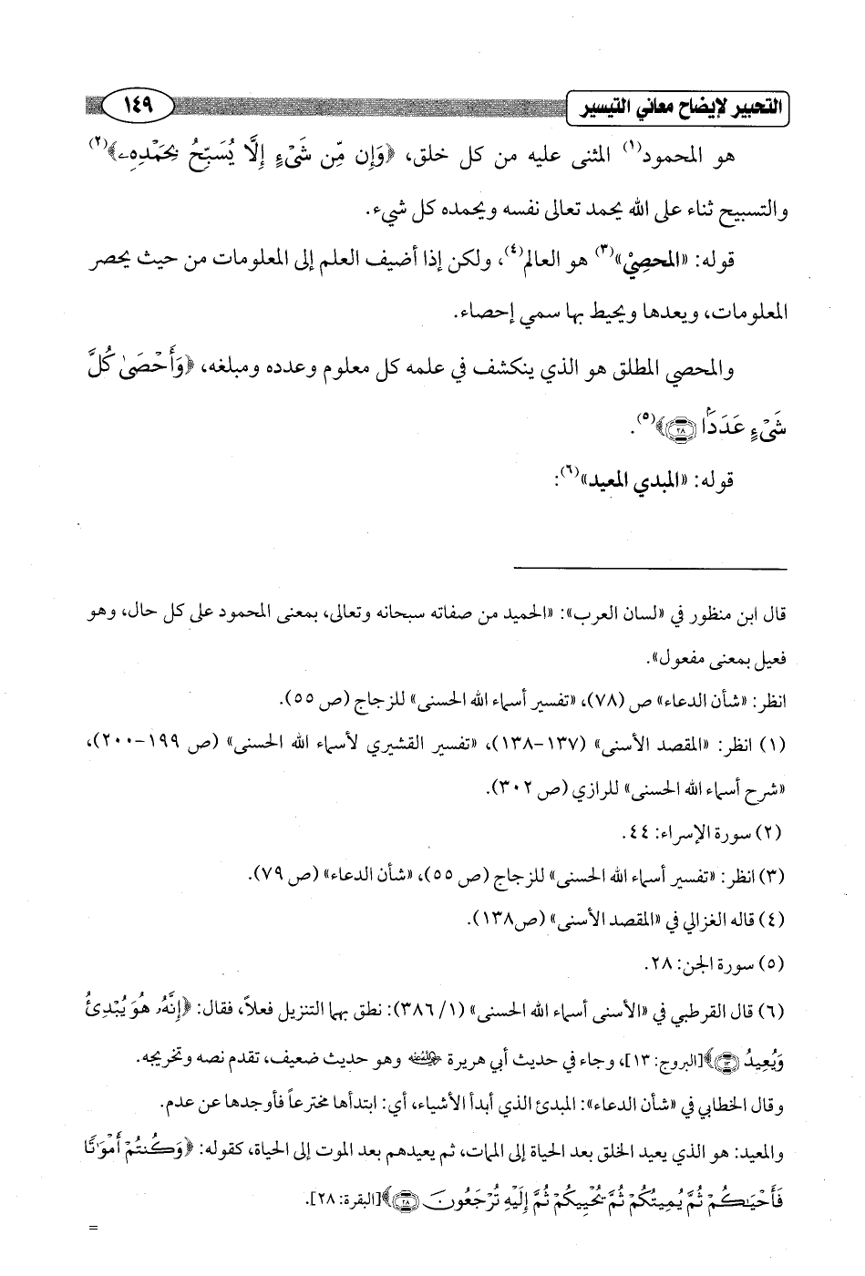 (¬1) انظر: "المقصد الأسنى" (137 - 138)، "تفسير القشيري لأسماء الله الحسنى" (ص 199 - 200)، "شرح أسماء الله الحسنى" للرازي (ص 302).