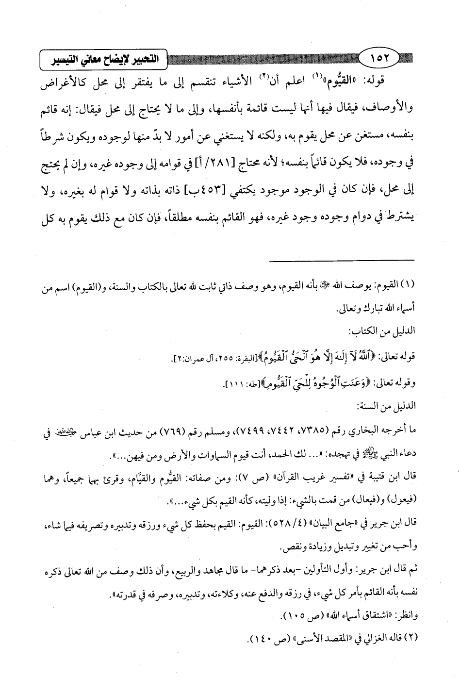 (¬1) القيوم: يوصف الله - عز وجل - بأنه القيوم، وهو وصف ذاتي ثابت لله تعالى بالكتاب والسنة، و (القيوم) اسم من أسماء الله تبارك وتعالى.