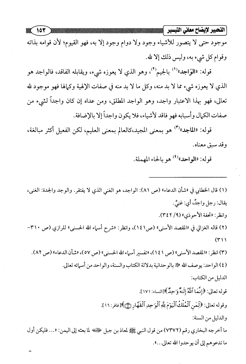 (¬3) انظر: "المقصد الأسنى" (ص 141)، "تفسير أسماء الله الحسنى" (ص 57)، "شأن الدعاء" (ص 82).