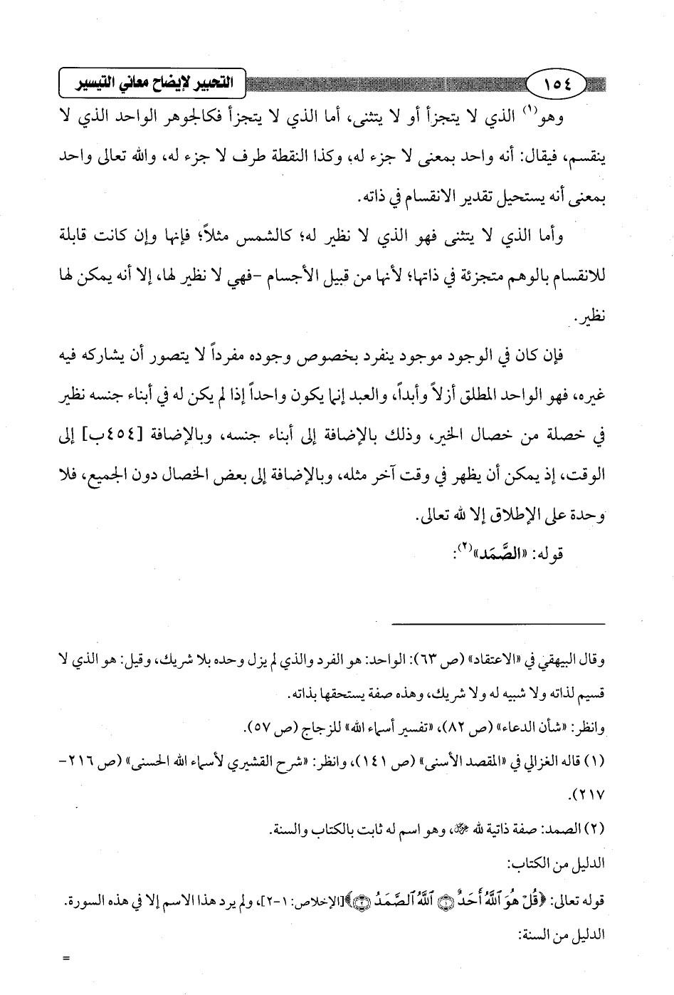 (¬2) الصمد: صفة ذاتية لله - عز وجل -, وهو اسم له ثابت بالكتاب والسنة.
