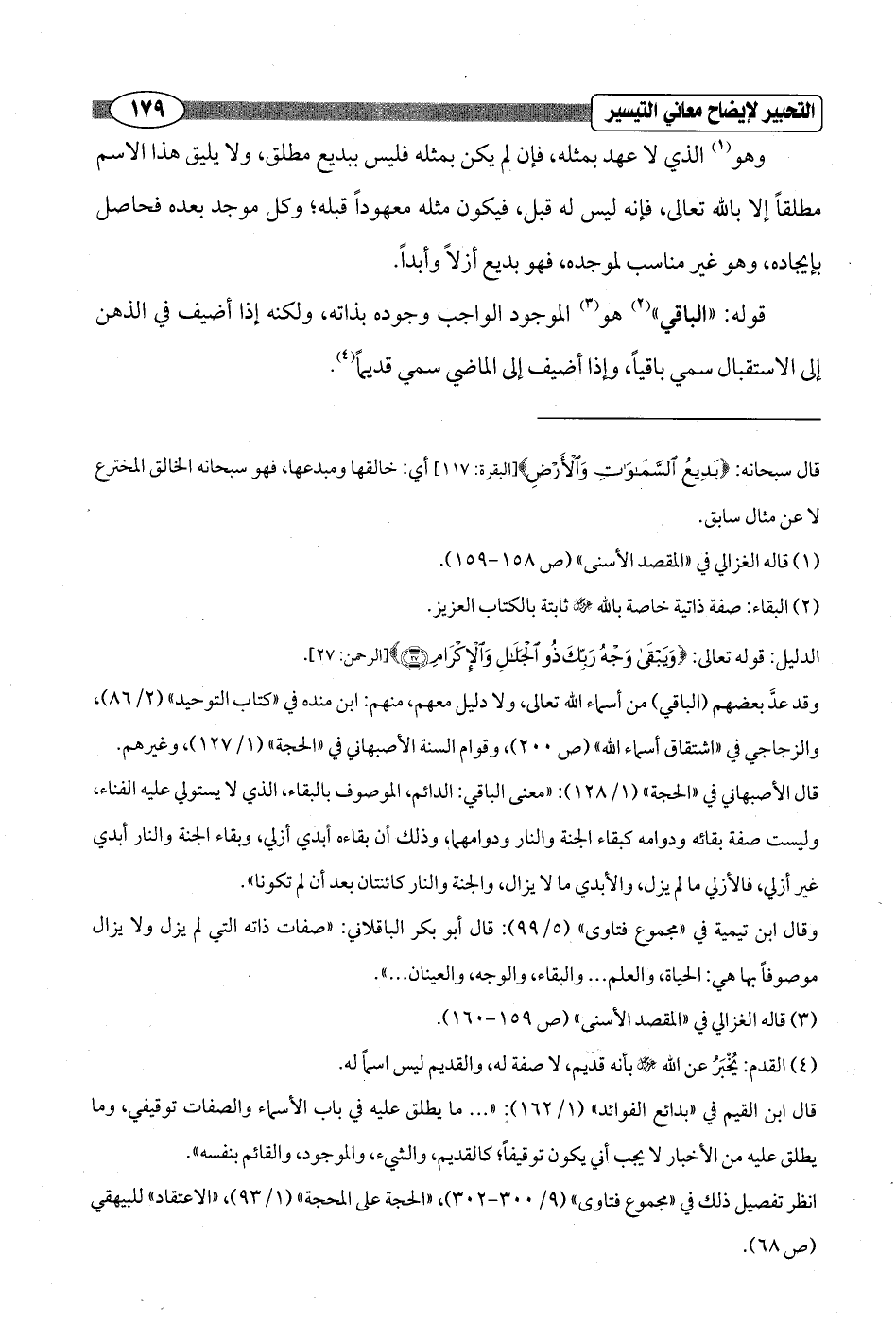 (¬2) البقاء: صفة ذاتية خاصة بالله - عز وجل - ثابتة بالكتاب العزيز.