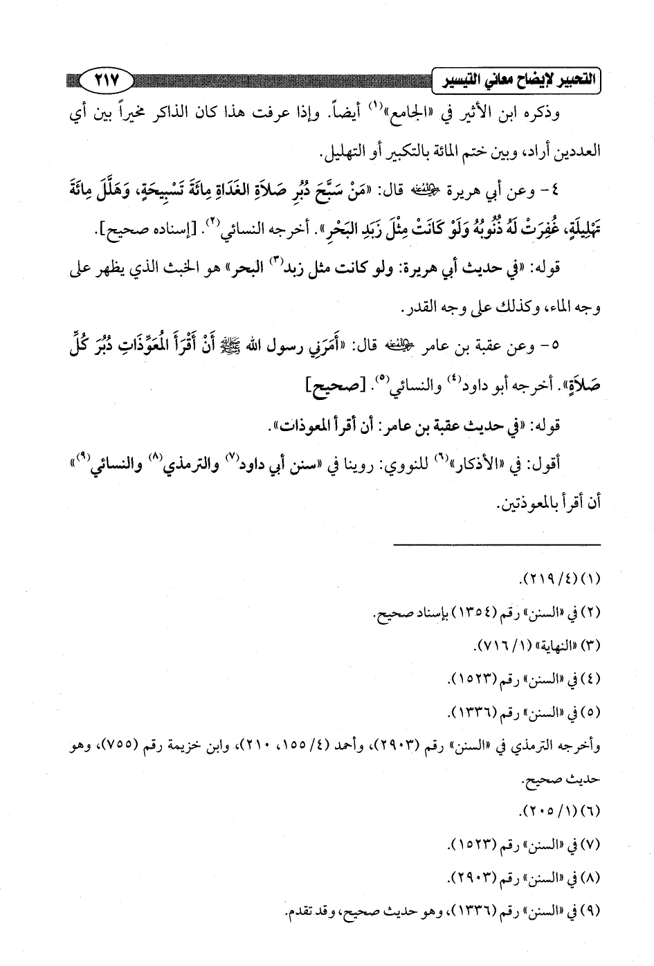 4 - وعن أبي هريرة - رضي الله عنه - قال: "مَنْ سَبَّحَ دُبُرِ صَلاَةِ الغَدَاةِ مِائَةَ تَسْبِيحَةٍ، وَهَلَّلَ مِائَةَ تَهْلِيلَةٍ، غُفِرَتْ لَهُ ذُنُوبُهُ وَلَوْ كَانَتْ مِثْلَ زَبَدِ البَحْرِ". أخرجه النسائي (¬2). [إسناده صحيح].