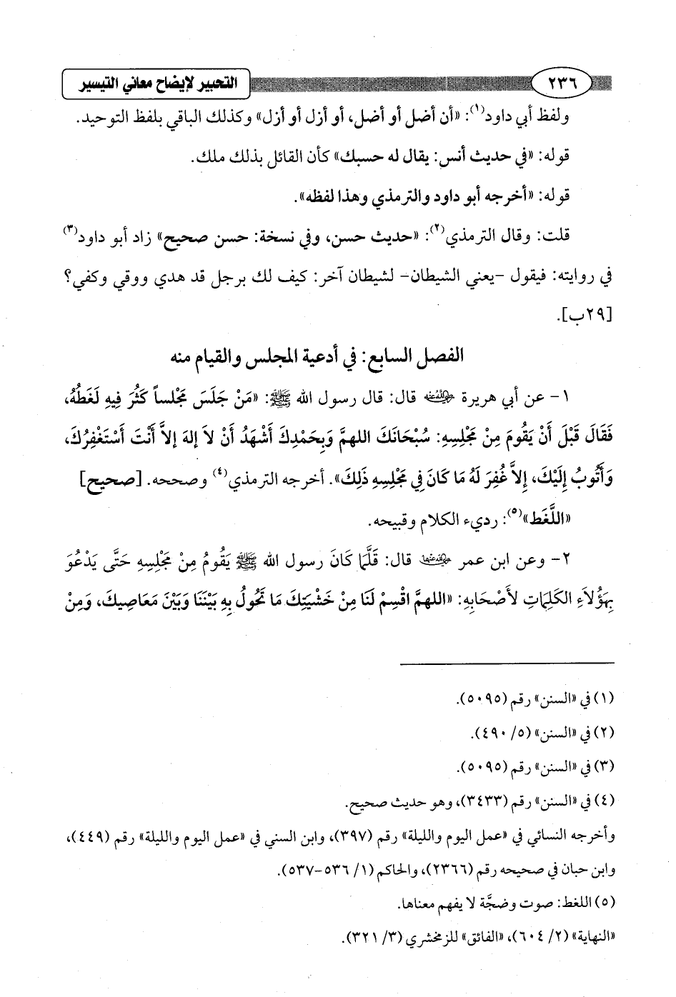 1 - عن أبي هريرة - رضي الله عنه - قال: قال رسول الله - صلى الله عليه وسلم -: "مَنْ جَلَسَ مَجْلساً كَثُرَ فِيهِ لَغَطُهُ، فَقَالَ قَبْلَ أَنْ يَقُومَ مِنْ مَجْلِسِهِ: سُبْحَانَكَ اللهمَّ وَبِحَمْدِكَ أَشْهَدُ أَنْ لاَ إلهَ إلاَّ أَنْتَ أَسْتَغْفِرُكَ، وَأَتُوبُ إِلَيْكَ، إِلاَّ غُفِرَ لَهُ مَا كَانَ فِي مَجْلِسِهِ ذَلِكَ". أخرجه الترمذي (¬4) وصححه. [صحيح]