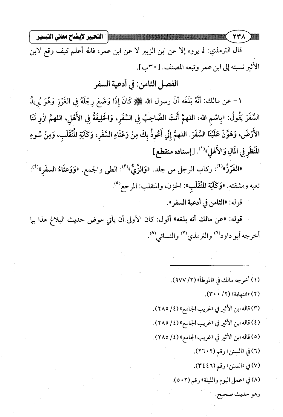 قوله: "الثامن في أدعية السفر".