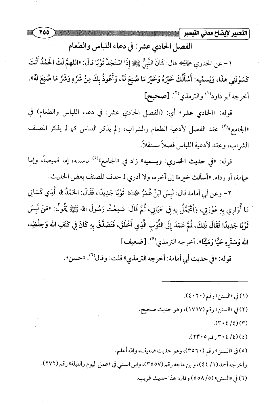 1 - عن الخدري - رضي الله عنه - قال: كَانَ النَّبِيُّ - صلى الله عليه وسلم - إذَا اسْتَجَدَّ ثَوْبًا قَالَ: "اللهمَّ لَكَ الحَمْدُ أَنْتَ كَسَوْتَنِي هذَا، وَيُسمِّيِه: أَسْأَلُكَ خَيْرَهُ وَخَيْرَ مَا صُنِعَ لَه، وَأَعُوذُ بِكَ مِنْ شَرَّهِ وَشَرِّ مَا صُنِعَ لَهُ". أخرجه أبو داود (¬1) والترمذي (¬2). [صحيح]