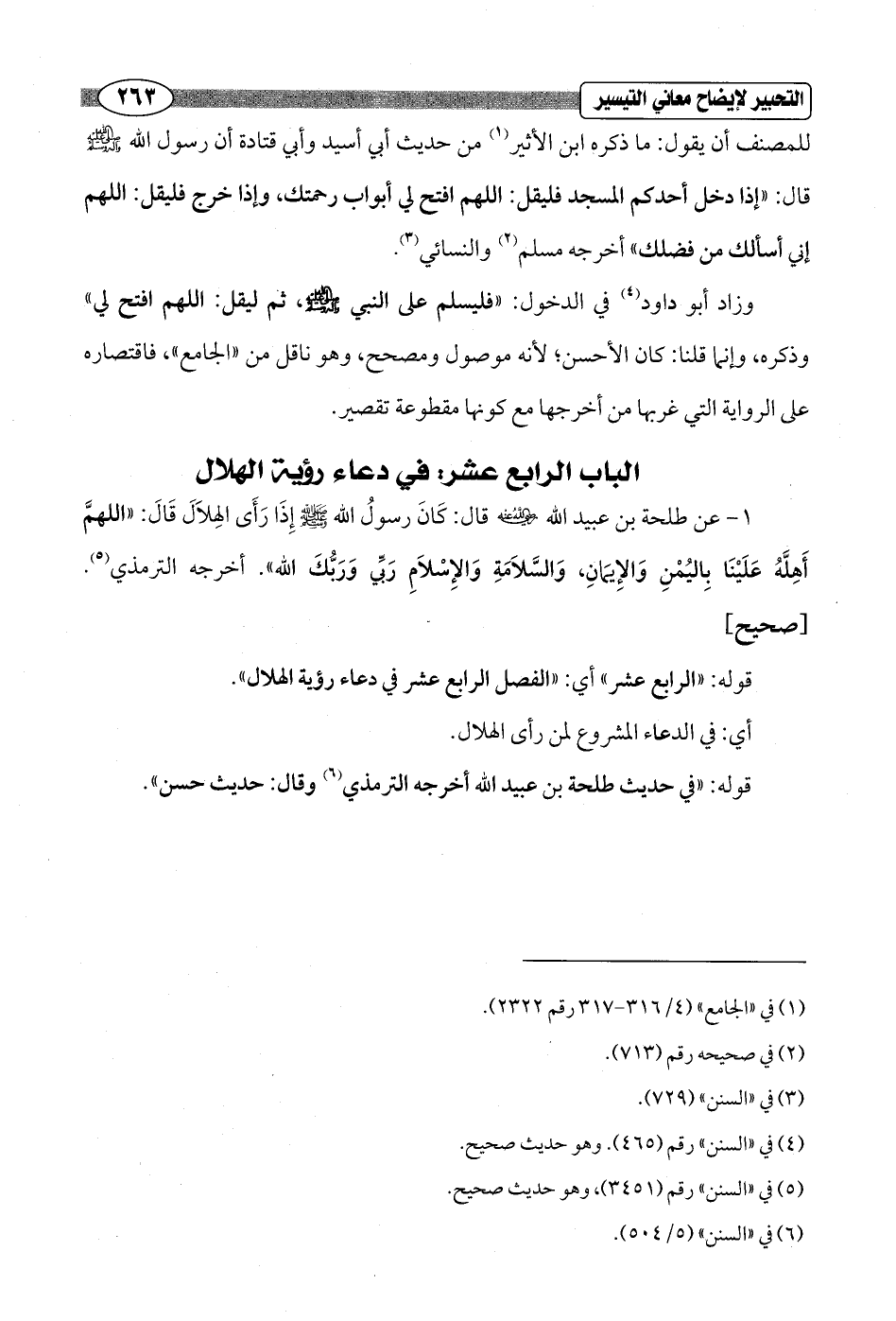 1 - عن طلحة بن عبيد الله - رضي الله عنه - قال: كَانَ رسولُ الله - صلى الله عليه وسلم - إِذَا رَأَى الهِلاَلَ قَالَ: "اللهمَّ أَهِلَّهُ عَلَيْنَا بِاليُمْنِ وَالإِيمَانِ، وَالسَّلاَمَةِ وَالإِسْلاَمِ رَبِّي وَرَبُّكَ الله". أخرجه الترمذي (¬5). [صحيح]