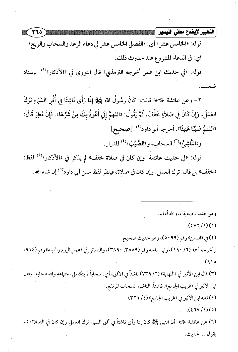 (¬6) عن عائشة - رضي الله عنها - أن النبي - صلى الله عليه وسلم - كان إذا رأى ناشئاً في أفق السماء ترك العمل وإن كان في الصلاة، ثم يقول ... الحديث.