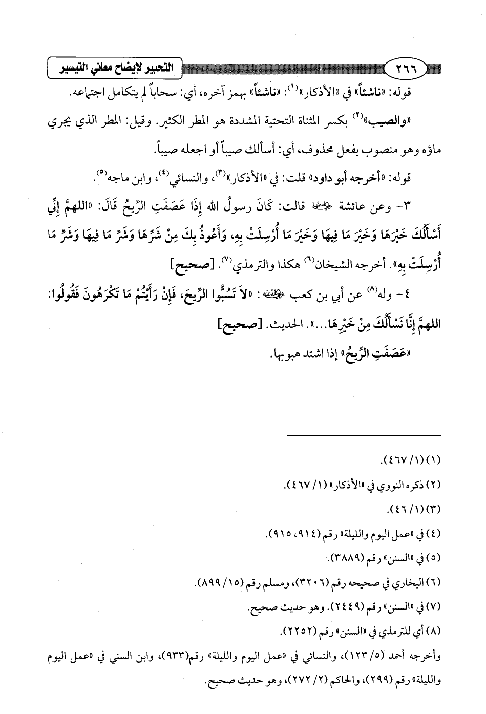 3 - وعن عائشة - رضي الله عنها - قالت: كَانَ رسولُ الله إِذَا عَصَفَتِ الرِّيحُ قَالَ: "اللهمَّ إِنِّي أَسْأَلُكَ خَيْرَهَا وَخَيْرَ مَا فِيهَا وَخَيْرَ مَا أُرْسِلَتْ بِهِ، وَأَعُوذُ بِكَ مِنْ شَرِّهَا وَشَرِّ مَا فِيهَا وَشَرِّ مَا أُرْسِلَتْ بِهِ". أخرجه الشيخان (¬6) هكذا والترمذي (¬7). [صحيح]