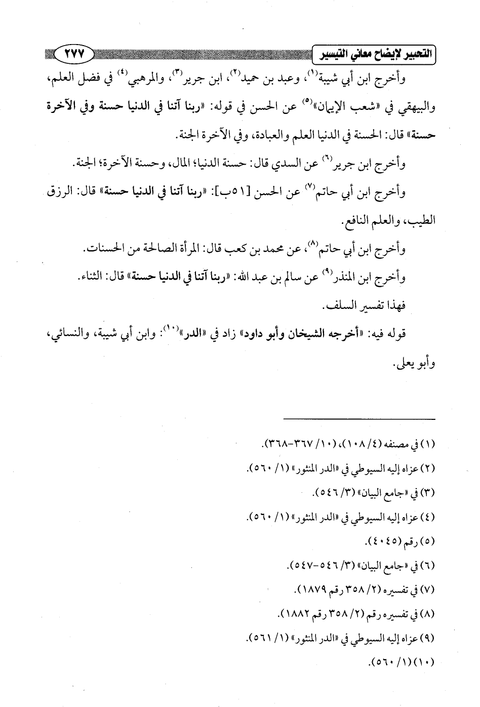 وأخرج ابن أبي شيبة (¬1)، وعبد بن حميد (¬2)، ابن جرير (¬3)، والمرهبي (¬4) في فضل العلم، والبيهقي في "شعب الإيمان" (¬5) عن الحسن في قوله: "ربنا آتنا في الدنيا حسنة وفي الآخرة حسنة" قال: الحسنة في الدنيا العلم والعبادة، وفي الآخرة الجنة.