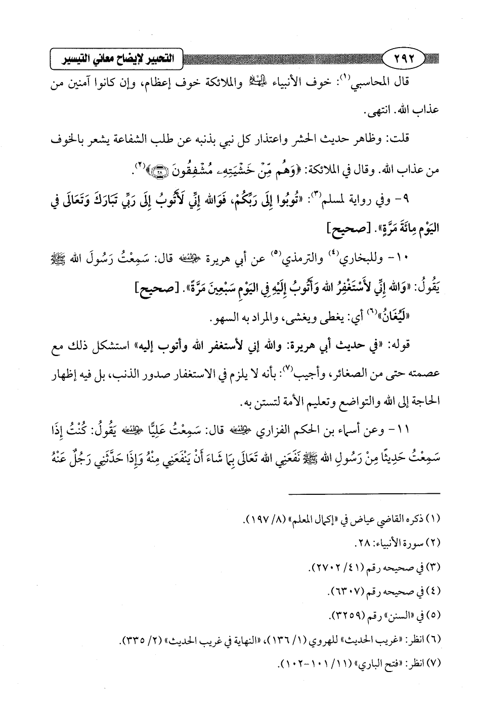 10 - وللبخاري (¬4) والترمذي (¬5) عن أبي هريرة - رضي الله عنه - قال: سَمِعْتُ رَسُولَ الله - صلى الله عليه وسلم - يَقُولُ: "وَالله إِنِّي لأَسْتَغْفِرُ الله وأَتُوبُ إِلَيْهِ فِي اليَوْمِ سَبْعِينَ مَرَّةً". [صحيح]