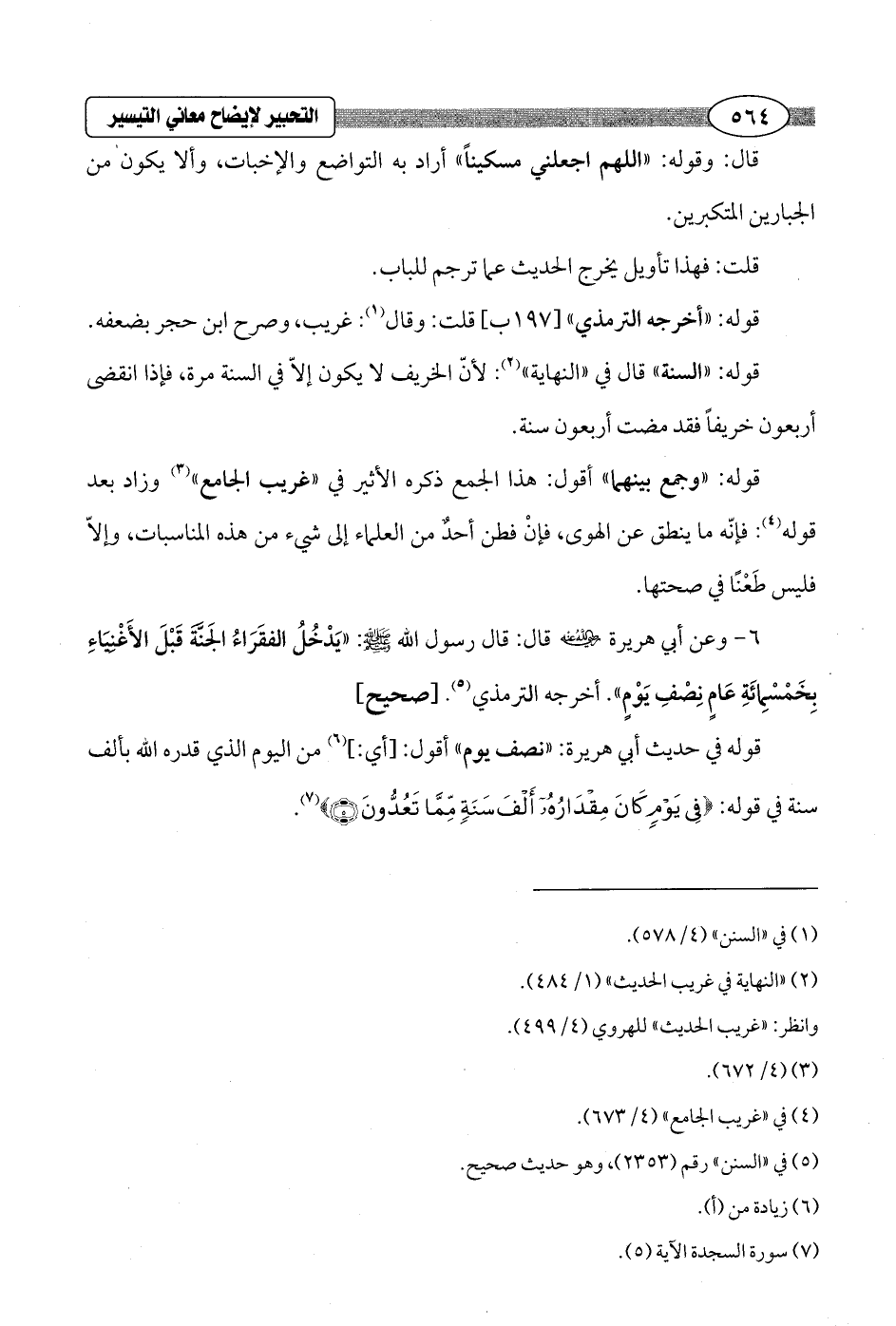 قوله في حديث أبي هريرة: "نصف يوم" أقول: [أي:] (¬6) من اليوم الذي قدره الله بألف سنة في قوله: {فِي يَوْمٍ كَانَ مِقْدَارُهُ أَلْفَ سَنَةٍ مِمَّا تَعُدُّونَ (5)} (¬7).