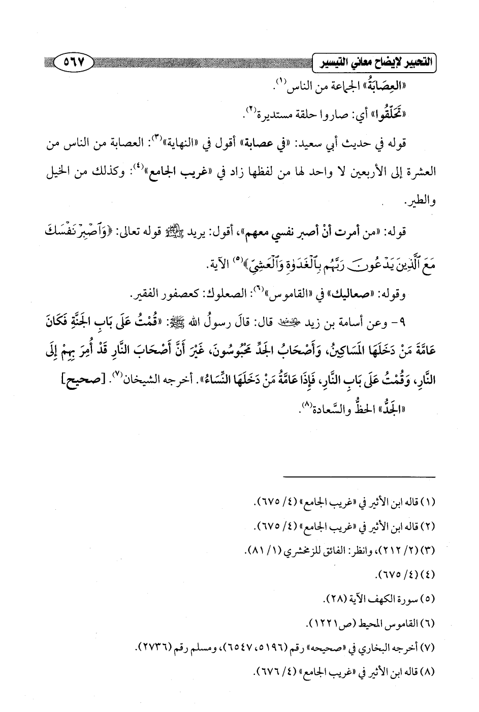 قوله في حديث أبي سعيد: "في عصابة" أقول في "النهاية" (¬3): العصابة من الناس من العشرة إلى الأربعين لا واحد لها من لفظها زاد في "غريب الجامع" (¬4): وكذلك من الخيل والطير.